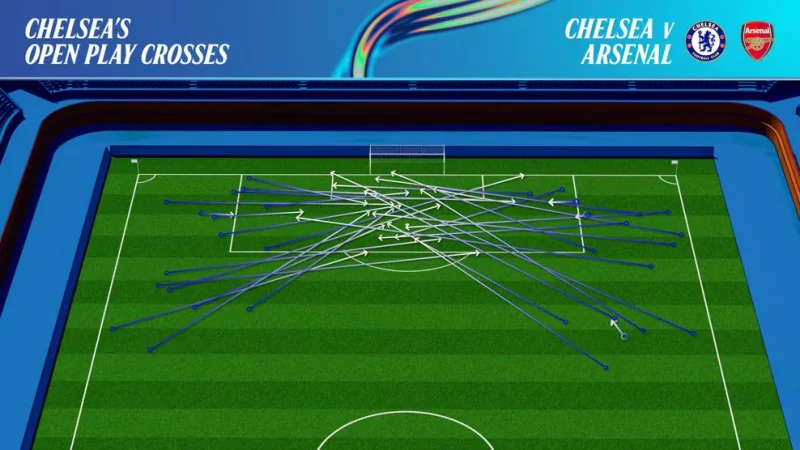 Det mest vedvarende og farlige greb var dog ifølge Cortés holdets mange forskellige indlæg ind i feltet. Chelsea slog indlæg fra flere zoner og i flere former: tidlige indlæg, cutbacks og dybere bolde.