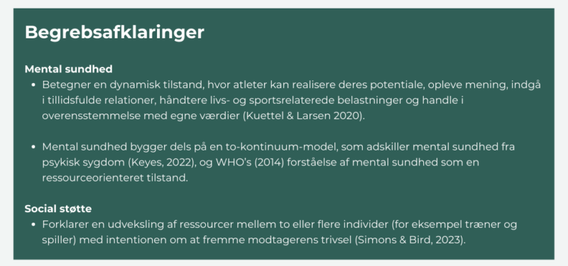 - Relationer til trænere beskrives som vigtige for spillernes mentale sundhed.