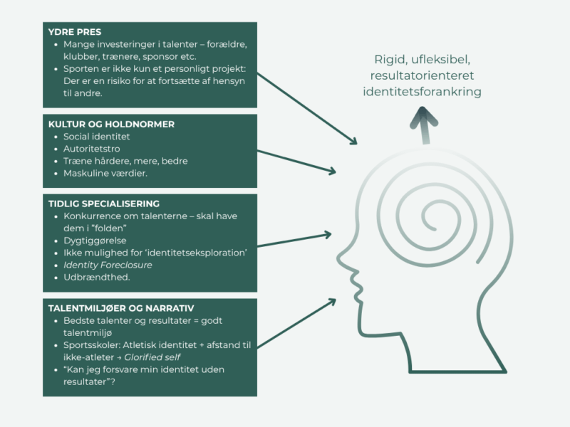 Identitetsdannelse er en kompleks størrelse, og særligt samspillet mellem det resultatorienterede, konkurrenceprægede elitemiljø og den sunde identitetsdannelse kan tolkes at være særligt udfordrende.