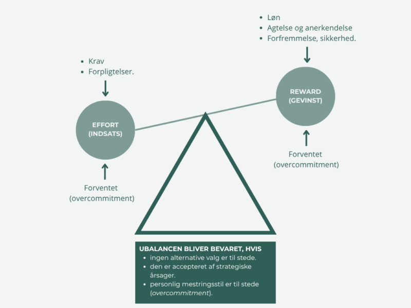Atleter, der konstant tænker på deres sport, risikerer mental udmattelse, da de ikke får tilstrækkeligt mentalt frirum til at restituere (Eccles & Kazmier, 2019). Samtidig risikerer de, at balancen mellem indsats og belønning kan blive skæv. De investerer utallige timer og ofrer meget, men føler ikke nødvendigvis altid, at de får tilstrækkeligt tilbage i form af enten spilletid, resultater eller anerkendelse. Når den store indsats ikke fører til de ønskede resultater, rammer det både meningen og glæden i sporten. Dette illustrerer Siegrists model ved figur 2.